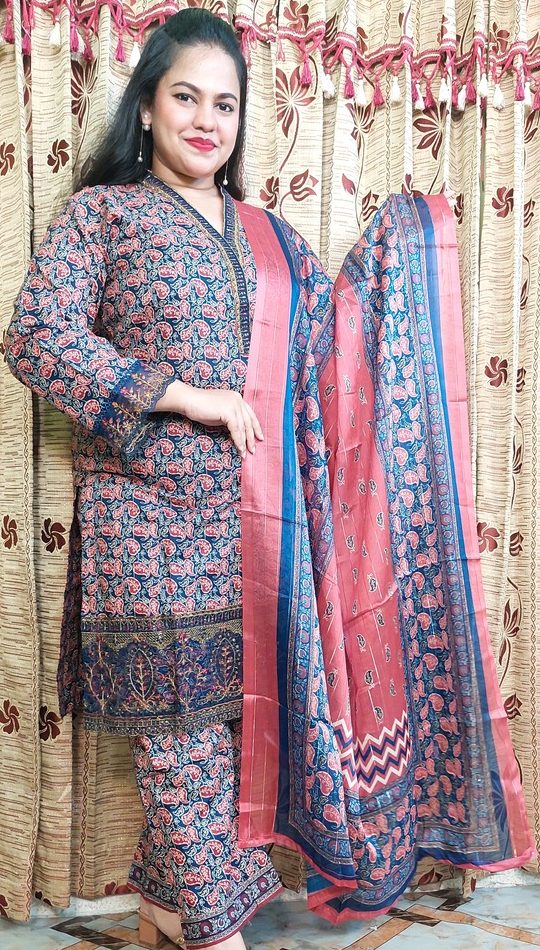 👉Dupatta: Full all over beautifully digital print Pure silk Dupatta zari Weaving