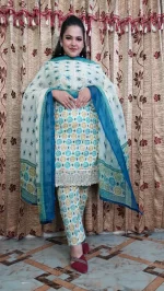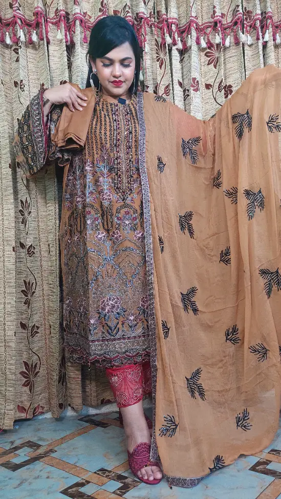 ��Dress: Full all over beautifully digital prints, neck Embroidery & leaser cut Work all over on pur