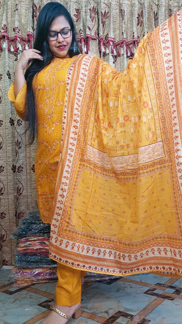 👉Dupatta: Full all over beautifully digital print on zari weaving cotton based chanderi