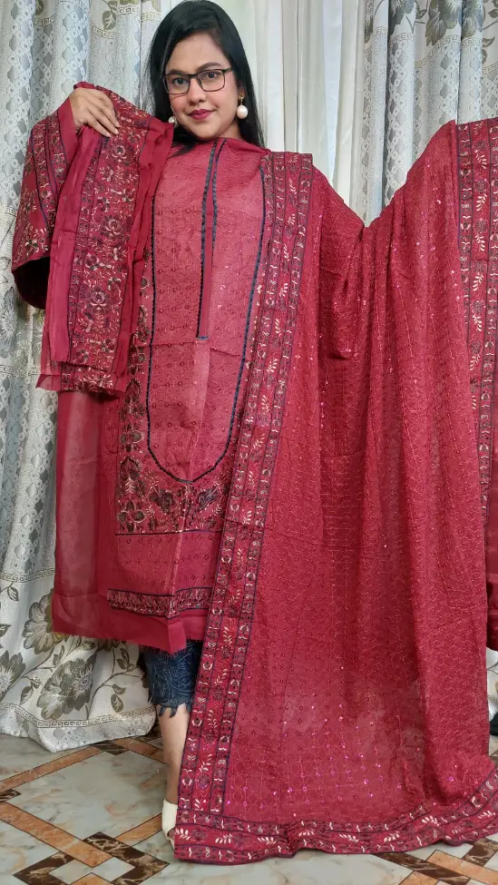 👉Dupatta: Pure Luxury Bamber Chiffon all over Heavy embroidery , sequence and Pure Silk Patta finishing goven