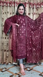 👉Dupatta:Pure Luxury chiffon with full all over Heavy embroidery with Glitter Sequence work