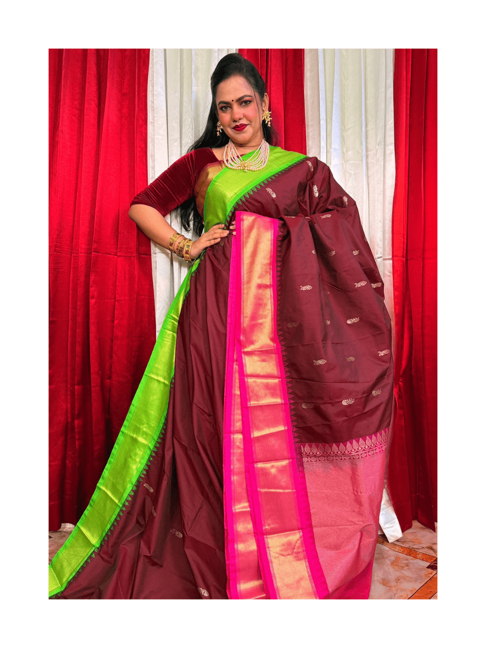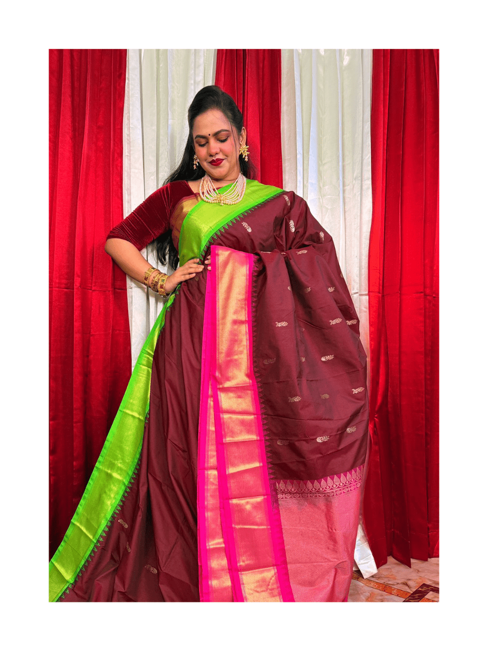 👉Saree All over zari woven on pure south silk katan gadwall inspired design. anchal tussle woven, ganga zamuna paar, blouse piece contrust running.