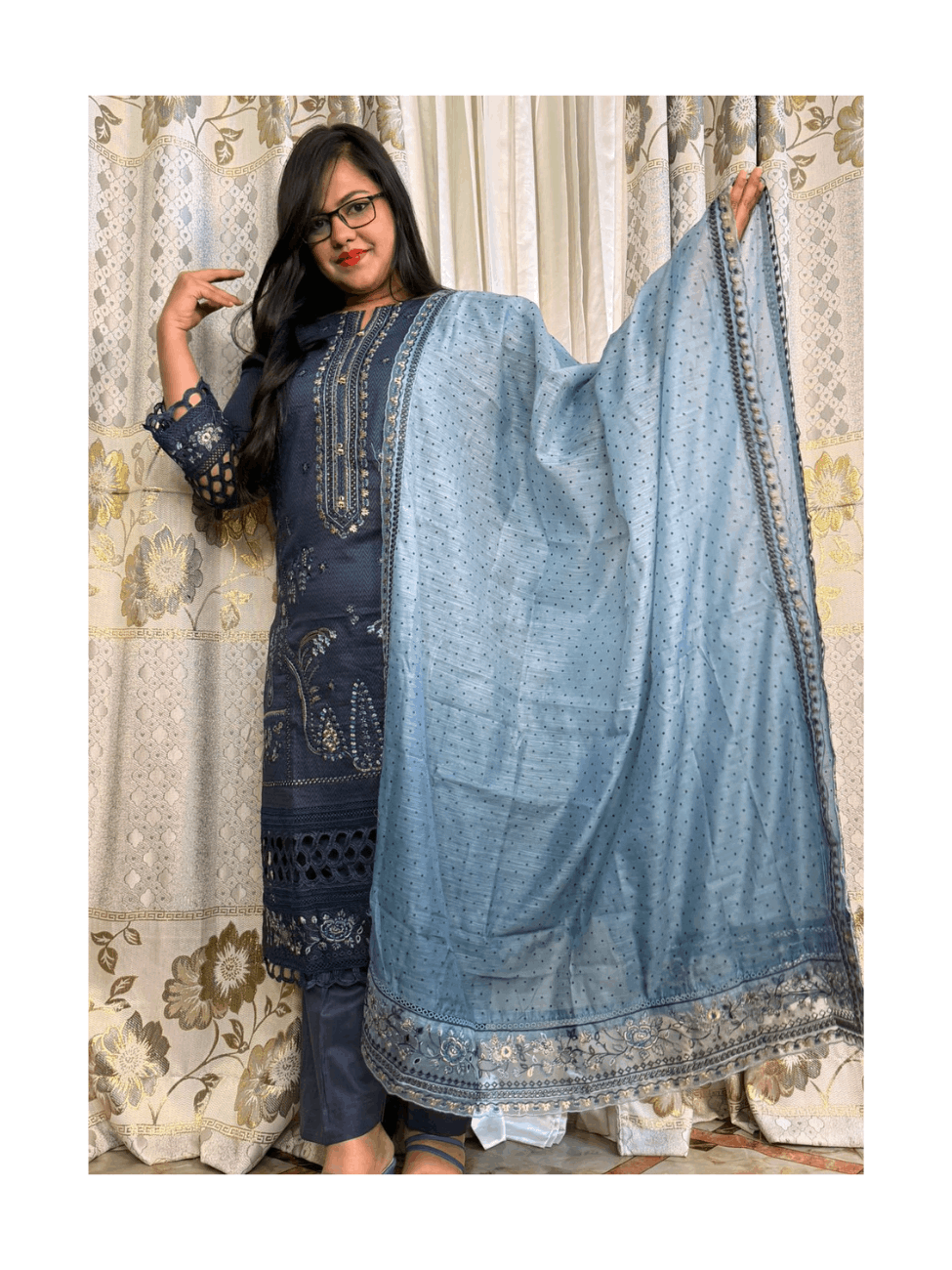 👉Dupatta: Full all over beautifully Shaded & Embroidery and Leaser cutwork  print Swiss Luxury Chanderi