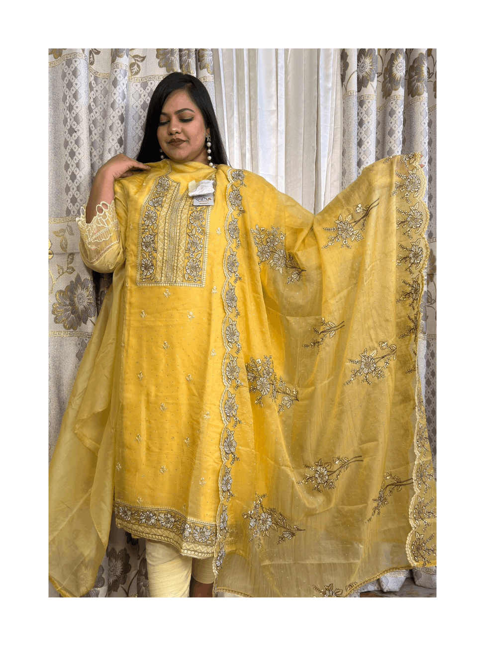 ✅ DUPATTA- GLITTER SHIMMER SILK ALL OVER HEAVY EMBROIDERY & STONE WORK & CUT WORK